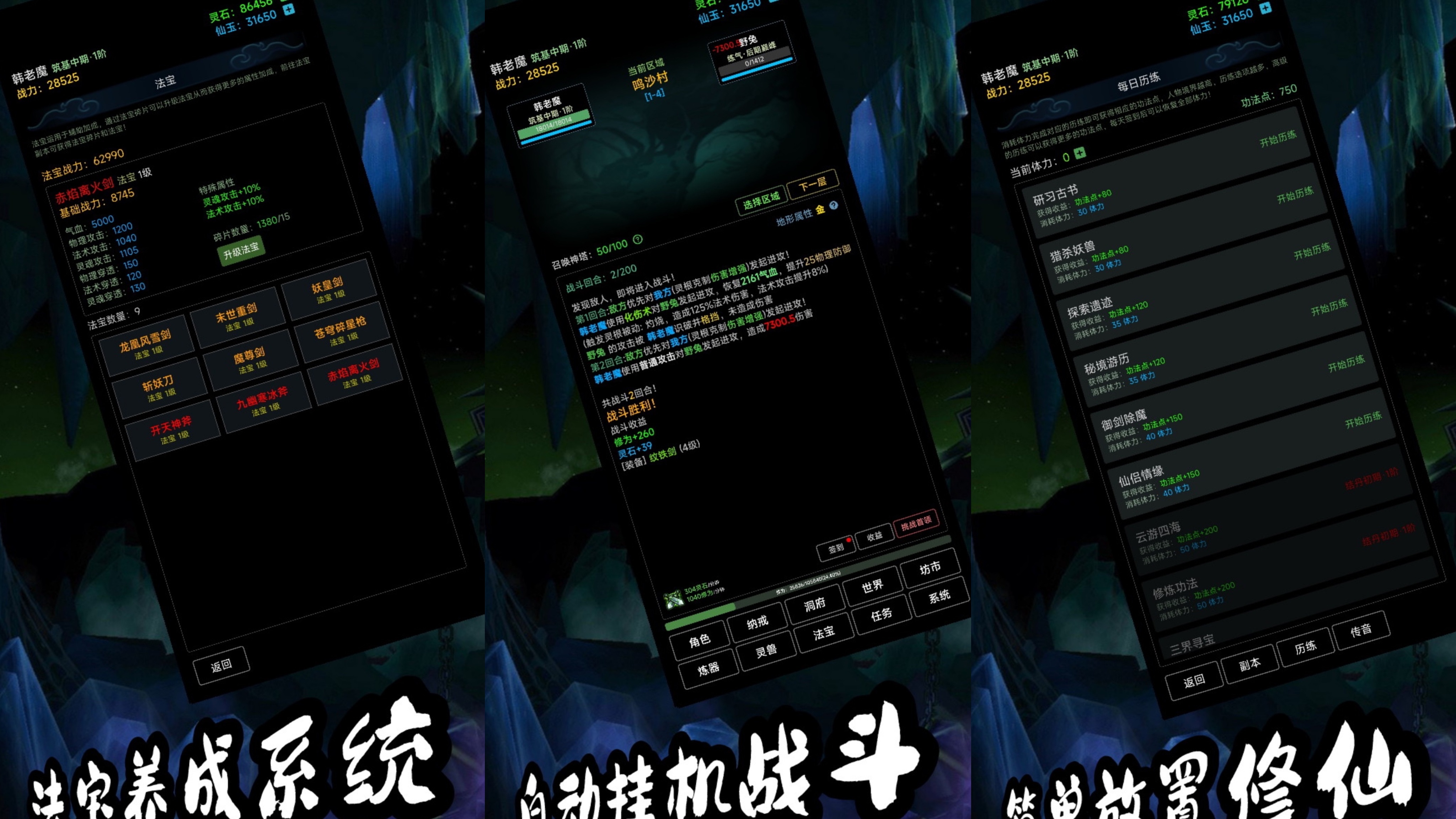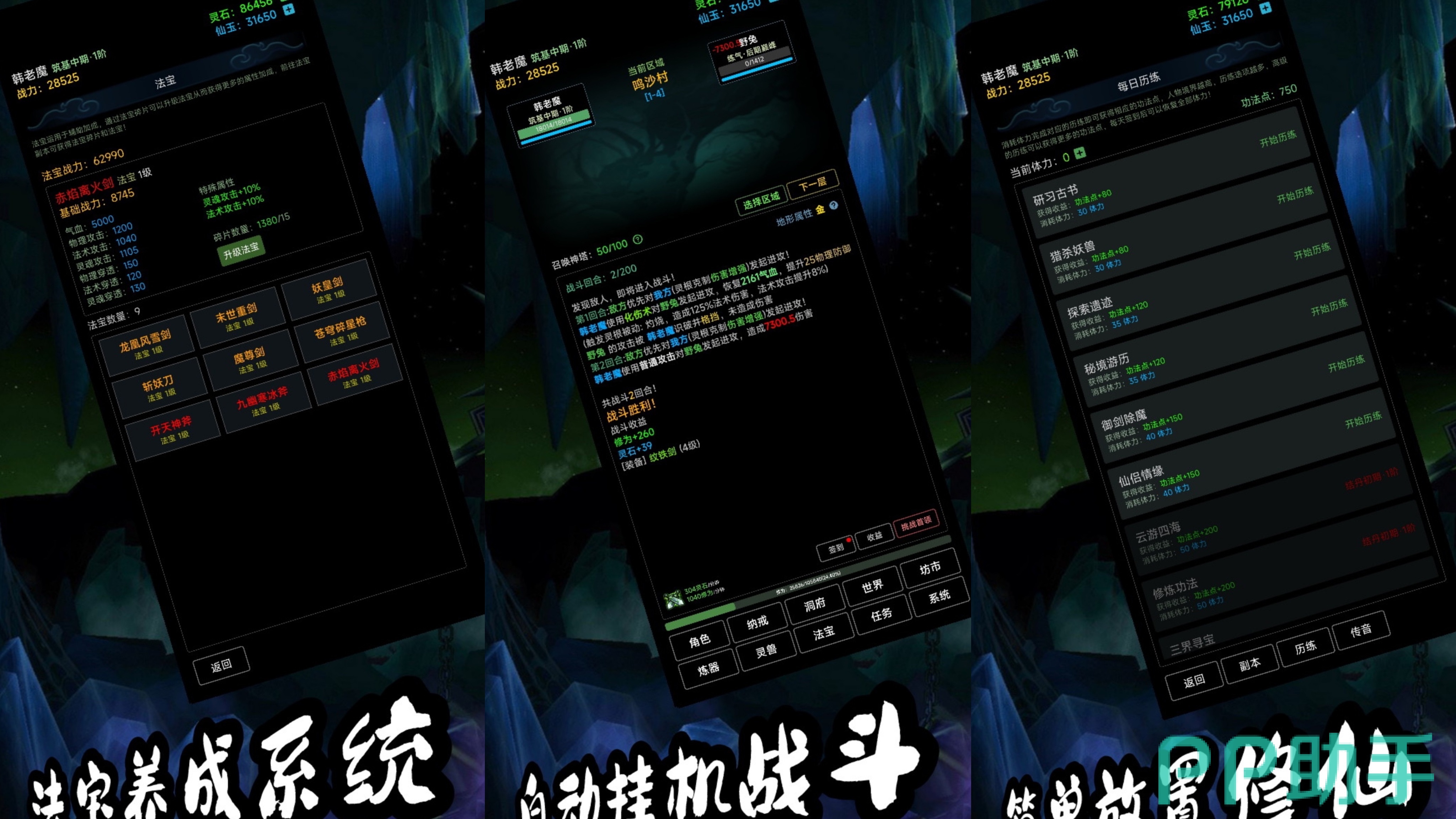 这是一款充满了东方修仙特色的仙侠主题手游,在游戏中玩家将进入一个古老的修仙世界,开启一场神秘的修仙寻宝之旅!游戏采用了3D渲染和粒子特效,为玩家打造高级的修仙视觉盛宴。同时游戏还加入了独特的竞技对战玩法,优化了手游操作上的不足,让玩家能够拥有更加沉浸更好的游戏体验!