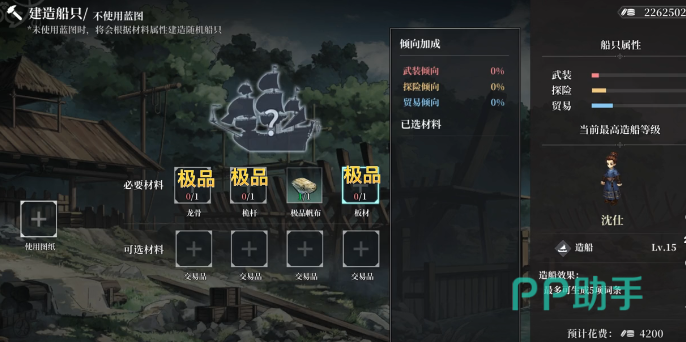 核心建材需跨区域采集:首当其冲的是“极品龙骨”,作为船体承重骨架,对木材硬度与韧性要求极高。该材料可在印度加尔各答及亚洲嘉定两地通过探索或商旅交易获取;也可直接前往当地港口商店,与NPC商人交涉后购得。其次为“极品桅杆”,直接影响帆装效率与航速稳定性,固定刷新点位于加勒比海马拉开波港,建议组队高效采集。