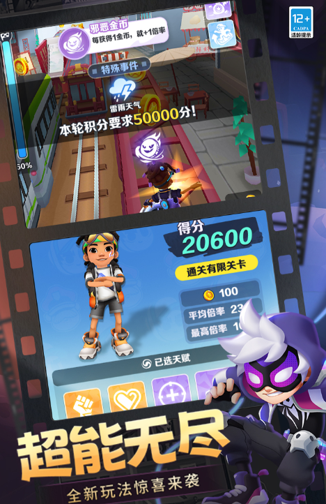 这是一款趣味十足的单机手游,玩家会化身一位在火车上留下创意涂鸦后,被警察追捕的少年。在奔逃途中,会有各式各样的障碍物横在面前。当大家手指在屏幕向下滑动,少年就会做出滑铲动作,轻松躲开较高的障碍;向上滑动,少年便能高高跃起,越过低矮的阻碍。要是前方有火车呼啸而来,别慌,左右滑动就能巧妙避开。游戏中还有各种道具,合理运用能帮大家摆脱警察。完成任务还能解锁装扮,给角色换上心仪的造型。