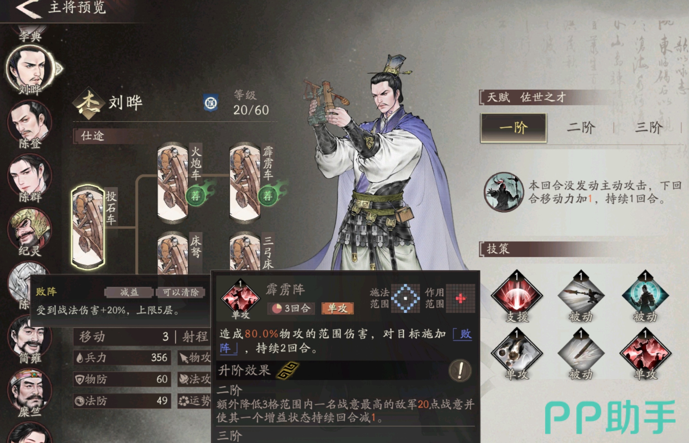 在分支选择上,优先推荐【倾国】路线,避免选择【烈女】,因其兵种被动与貂蝉自带技能【玲珑】存在功能重叠,无法叠加生效,导致资源浪费。必备技能组合建议为:【翩若惊鸿】+【沉鱼落雁】+【玲珑】,确保最大化辅助效能。