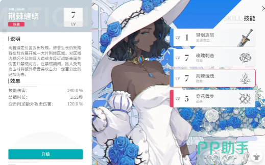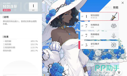 E技能:有两段伤害可以选择同时触发。技能倍率是比较高的,基本上不容易被闪避打断。在前摇时还会召唤一朵玫瑰花。