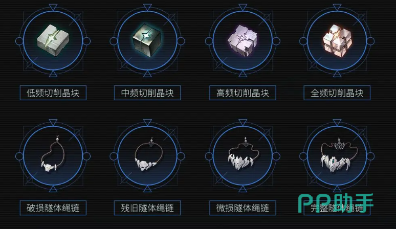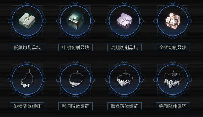 武器突破所需材料包括破损隧体绳链、低频切削晶块、中频切削晶块、微损隧体绳链、完整隧体绳链等,具体配置可参考下图所示清单。