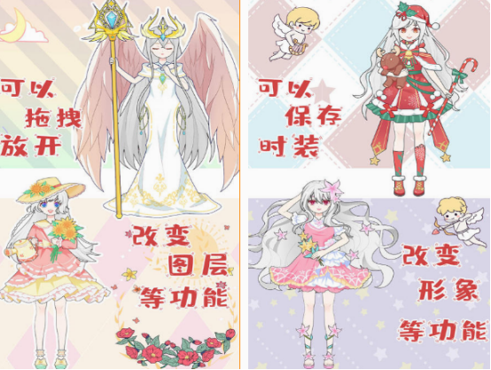 在此休闲换装游戏中,既可给大家带来非常可爱的游戏画面,更能创建游戏中的各种角色,所以使用道具以及服饰支持,将自己设置的服饰保存起来或者是删除。操作的时候也是比较简单的,当你喜欢上了里面所具备的服饰道具以后,通过简单的拖拽或者是放开以后,就可给里面的角色更换,还可使用对话框以及文字。