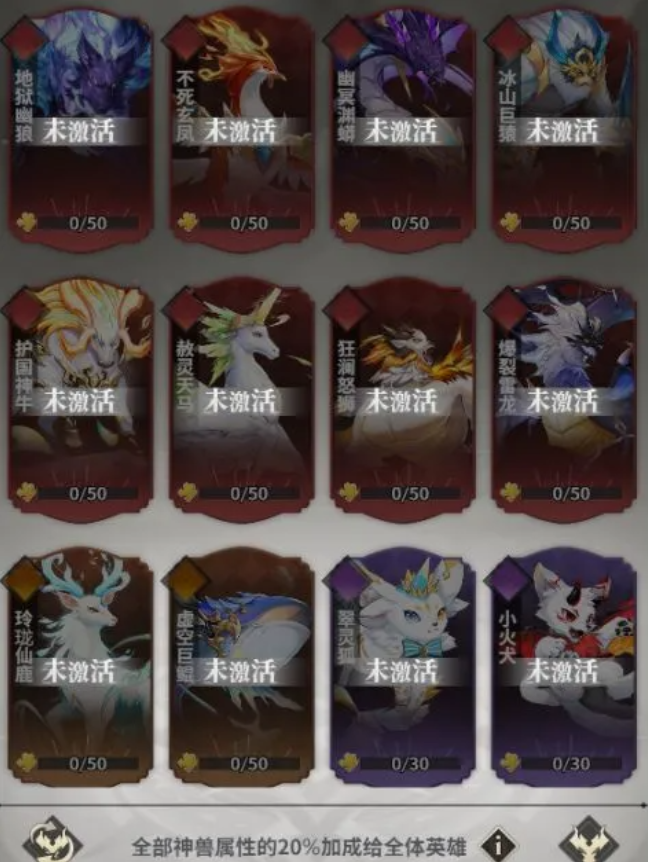 神兽按品质划分为红、橙、紫三档,红色为顶级,橙色次之,紫色为初始档位。所有神兽均通过“星辰指引”抽卡获取,无其他直购或活动兑换渠道。完成全图鉴收集可激活额外属性加成,因此建议合理分配抽取资源,避免过度集中于单一目标而影响图鉴进度。
