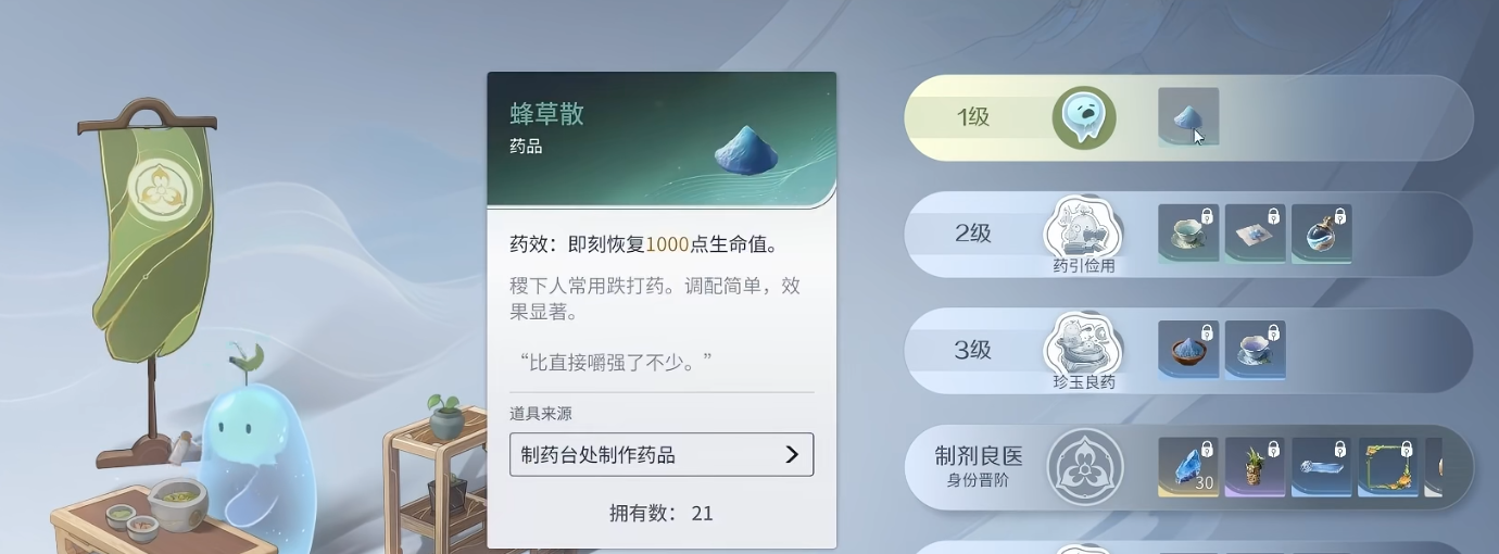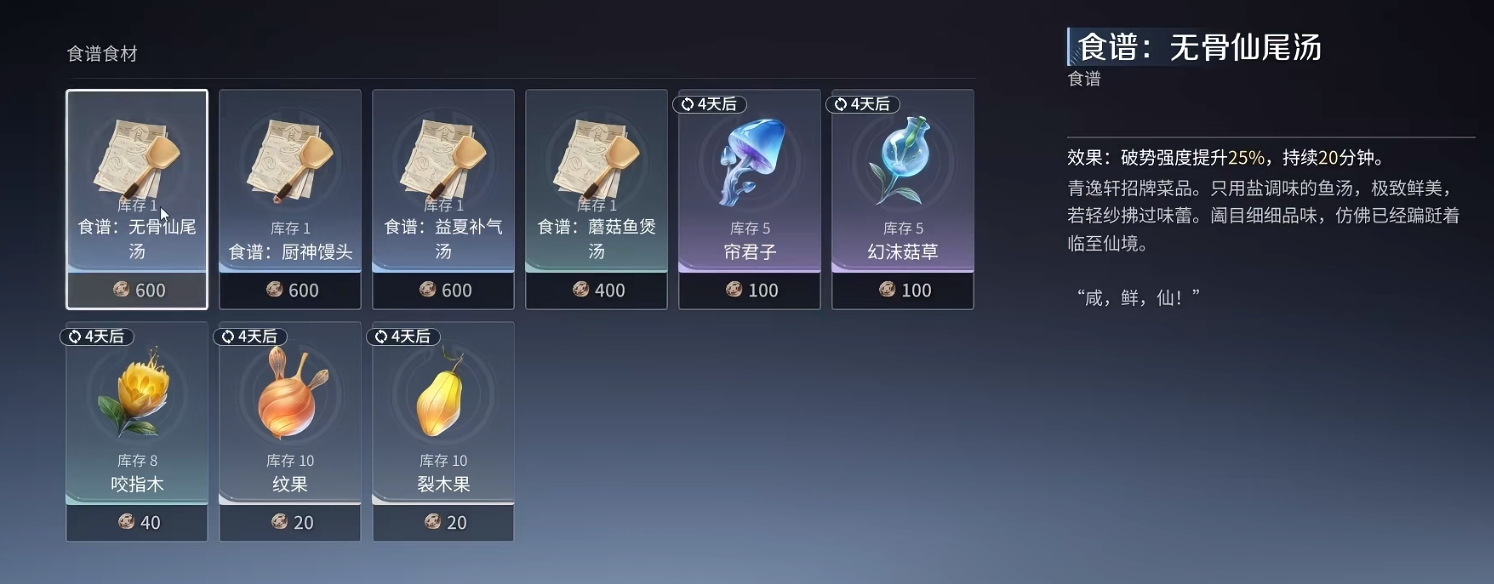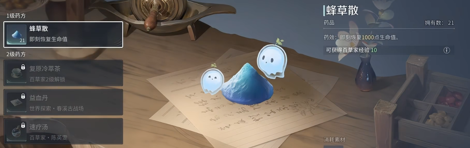 该系统共设六大核心副职方向,彼此独立又可协同联动,显著延长玩家在副本外的内容停留时长,并强化角色成长的自主性与叙事代入感。其中,“百草家”专注自然资源的采集与转化,玩家可识别上百种野外植物,通过研磨、蒸馏、配伍等工序炼制疗愈药剂,直接作用于战斗后的伤势恢复与状态补正;而“肴馔家”则围绕食材系统展开,支持数十种基础烹饪组合,所制食物不仅能临时提升攻击力、移速或回血效率,更可在长途探索中维持体力阈值,降低资源消耗压力。