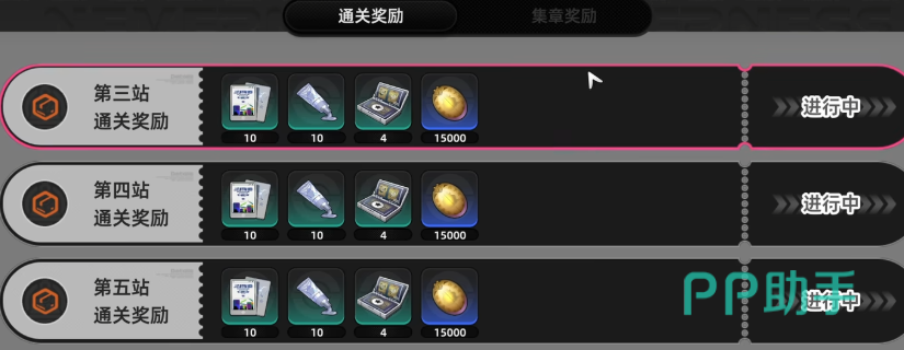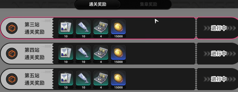 该副本按难度划分为10个连续车站,每站均为独立战斗关卡。玩家每次挑战可部署3名角色,并可在战前装配适配的徽章以强化属性。每成功通关一站,系统将固定发放行车日志×1、染色剂×1及龟甲币×1。因此,通关车站数量直接决定单次挑战的行车日志总收益。建议玩家在进入前查阅各站机制说明(如元素克制、阶段转换节奏、Boss弱点提示),优先配置具备高生存能力与AOE清场效率的角色组合,以稳定推进至更高车站。