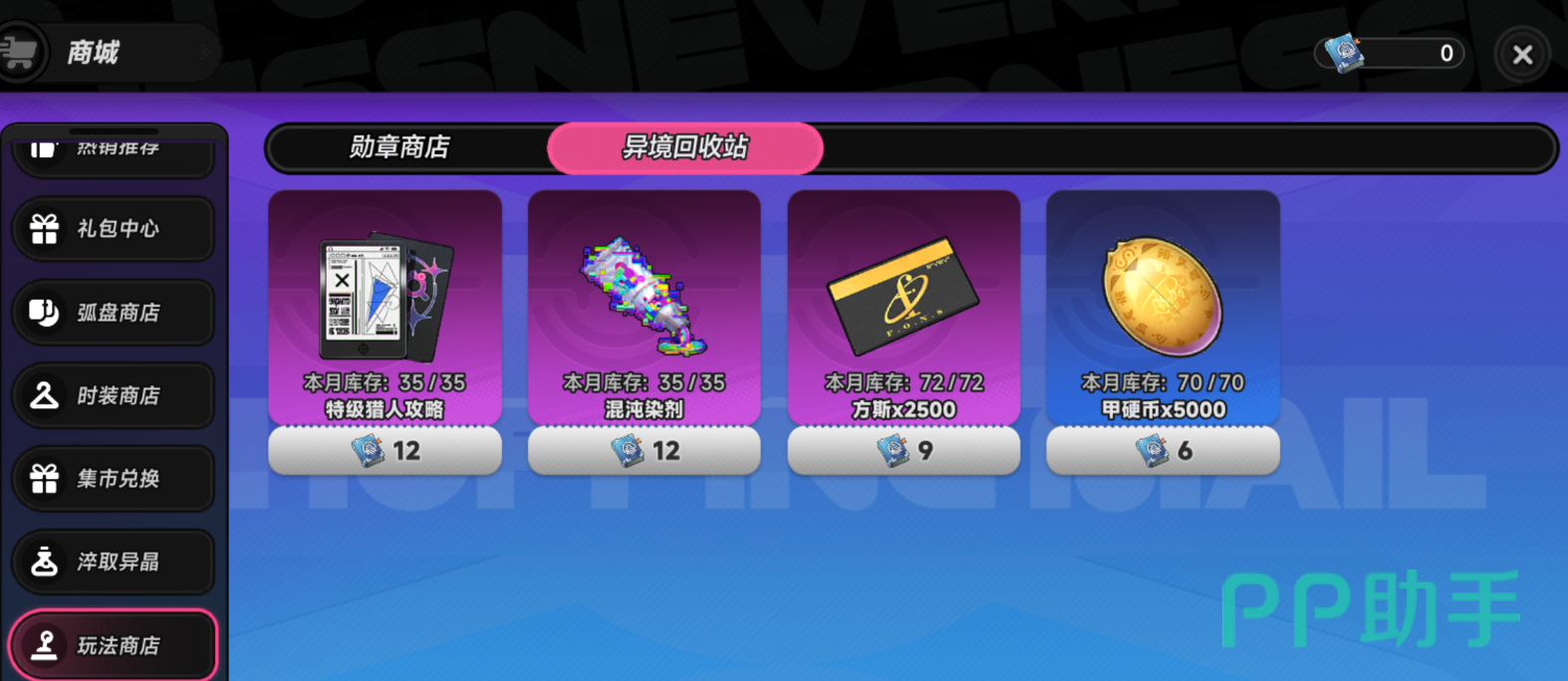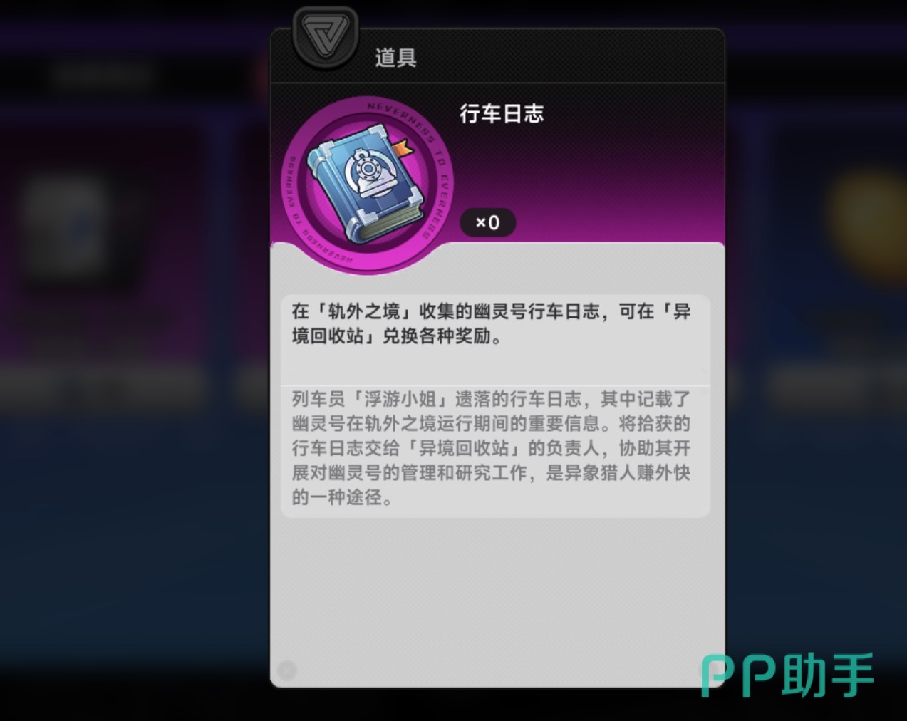 所获行车日志可在【玩法商店】→【异境回收站】中兑换。该回收站专为前期资源紧缺阶段设计,上架道具涵盖角色突破材料、技能升级卷轴、基础养成资源包等高需求物品,是新手期提升战力效率的关键补给渠道。