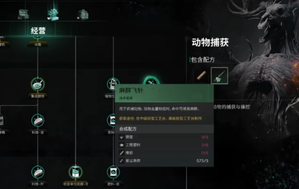 要开启动物养殖,首先需要解锁游戏中的畜牧养殖系统,需要玩家完成一定的主线任务或达到特定等级,以获取相应的科技解锁权限,解锁后玩家才能进一步开展后续的养殖操作,制作麻醉飞针是抓捕动物的关键步骤,玩家需要前往轻工具台,消耗四阶材料来制作,麻醉飞针用于将动物麻醉,以便安全地进行抓捕,不同动物所需的麻醉次数可能有所不同。