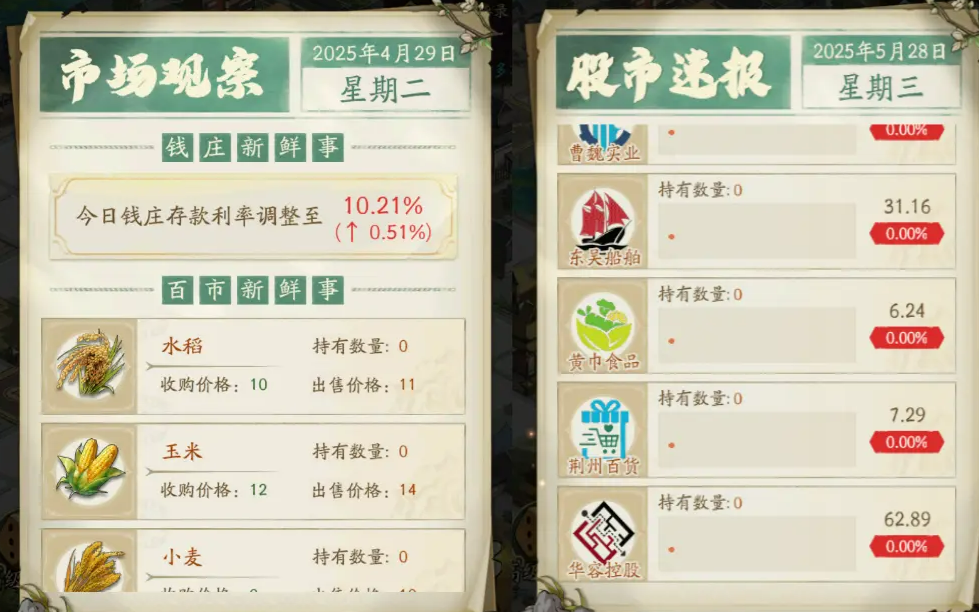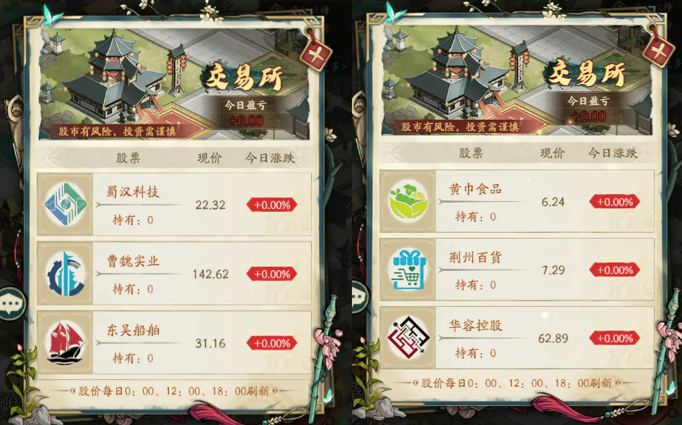 活动里最有意思的莫过于几个关键地块。比如交易所,一进门你就能碰到“股市小精灵”,让你在限定时间内完成一次买入或卖出操作。股价每天三次变动:0点、12点、18点,不提前也不延后,掐着表来交易才算真·江湖投资人。遇到钱庄的话,就是存钱、取钱的好机会,也只能操作一次,得好好掂量一下你的资产流动。