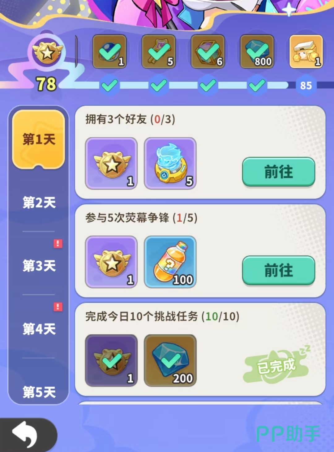第二项常驻活动为“七日挑战”,采用动态解锁机制:每日开放一项独立挑战目标,完成即获得挑战积分。积分累计至预设档位后,可开启对应积分宝箱,领取阶段性奖励。该活动无时间压力限制——自开启起长期有效,未完成目标可跨日延续,且同一类型任务次数全局共享。若玩家在目标正式解锁前已达成条件,则目标上线后可直接领取奖励,无需重复操作。