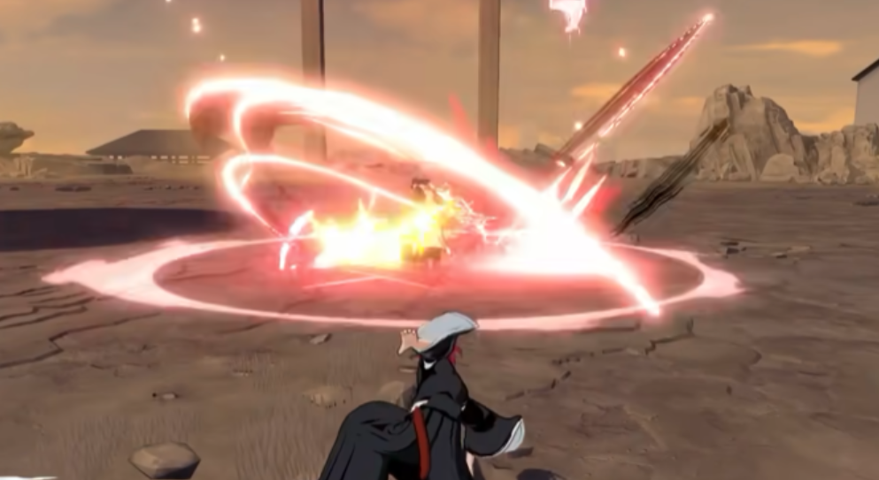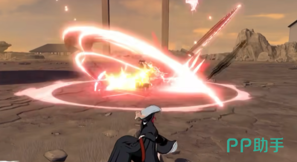紧接着切换至一护,利用其开场即可激活的大招机制发动密集黑剑打击,该阶段拥有长时间无敌效果,能有效规避BOSS反击。大招结束后迅速衔接普攻连段,并结合适时闪避打断BOSS攻势,确保整套输出流程完整释放。