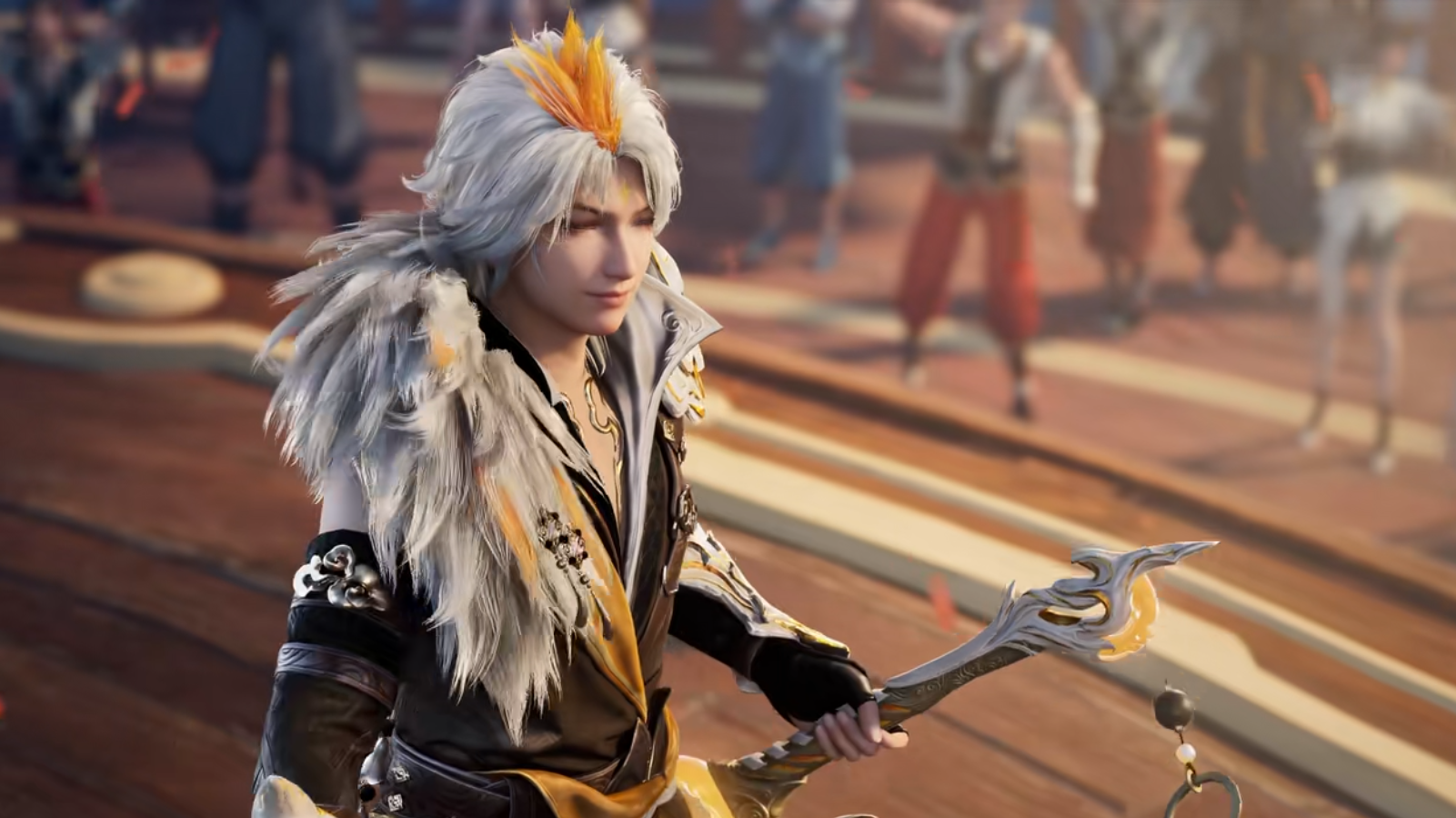 外观设计以浩瀚星穹为视觉基底,衣袂边缘缀有流动微光,整体剪裁利落,摒弃繁复堆砌,却在肩甲、束腰、袖口等关键部位精细融入云狌图腾纹样,实现主题符号与角色气质的高度统一。角色移动时,衣摆随势轻扬,星辉随之流转,动态呈现少年仗剑行远的飒爽气度与未染尘俗的赤子锐气。