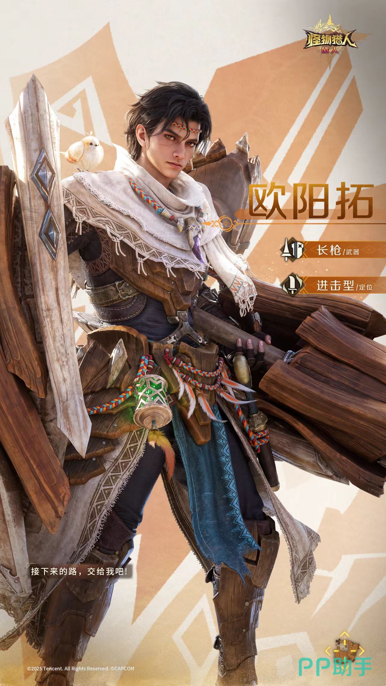 欧阳拓是近期官方新公布的冒险家之一,因此在玩家中引发了广泛讨论。他使用长枪作为主武器,战斗定位为进攻型角色。在团队中,欧阳拓承担着核心输出的职责,擅长在短时间内打出爆发性伤害,尤其适用于限时任务或高难度副本,在关键时刻能够有效压制怪物行动,提升整体通关效率。
