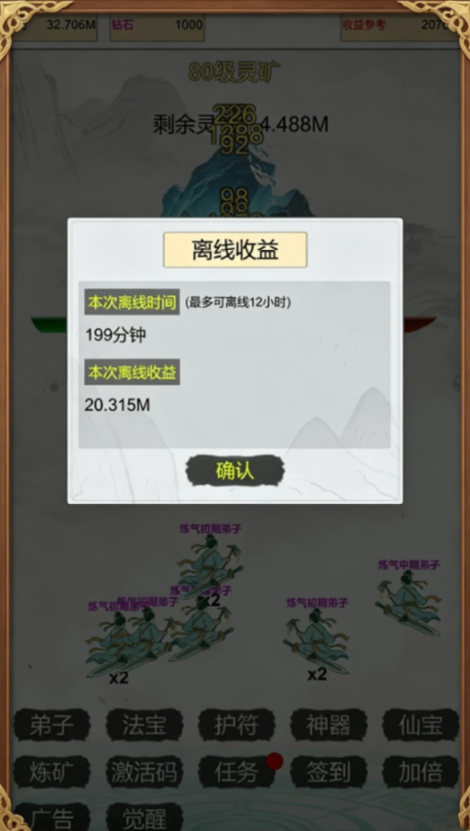 本作主打“离线可收益、上线即收获”的休闲修仙体验。初期,玩家凭借基础工具深入地下矿洞,自主勘探并采集各类矿石;随境界提升,可招募弟子组建采矿小队,实现自动化作业。弟子数量越多,灵脉开采效率越高,飞剑代步穿梭各矿区,大幅节省移动时间。全程无强制在线要求,挂机状态下仍能持续产出灵石、灵晶与稀有矿材,资源自动入库,修炼进度不中断。