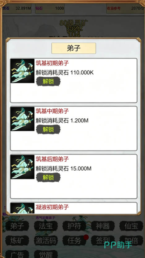 道具系统深度融入成长节奏:镐类装备可逐级强化,从凡铁锄到九天玄镐,显著缩短单次挖掘耗时;后期开放上古灵脉、混沌晶矿等高阶产区,数分钟内即可完成一次境界突破。弟子不仅承担开采职能,其资质、悟性与专属天赋亦影响整体产出效率,形成“人物养成+团队协同+资源管理”三位一体的策略维度。