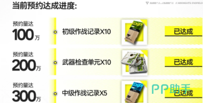 预约奖励采用分阶段达成机制,不同人数目标对应不同层级回馈。当预约总人数达到1500万时,所有成功预约用户可获得3000折金票,用于前期资源补给或基础养成;突破2000万后,额外发放20个高级作战记录,显著缩短新干员等级成长周期,提升开荒效率。