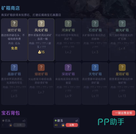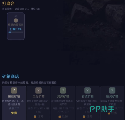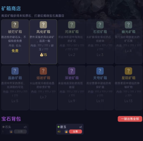 游戏中内置基础打磨台,用于处理采集所得原石。经打磨工序后,部分石材存在概率转化为具备属性加成的宝石。此类产物既可用于强化自身装备、提升挖掘效率,亦可作为高价值商品出售,是推动经济循环与职业成长的核心资源。