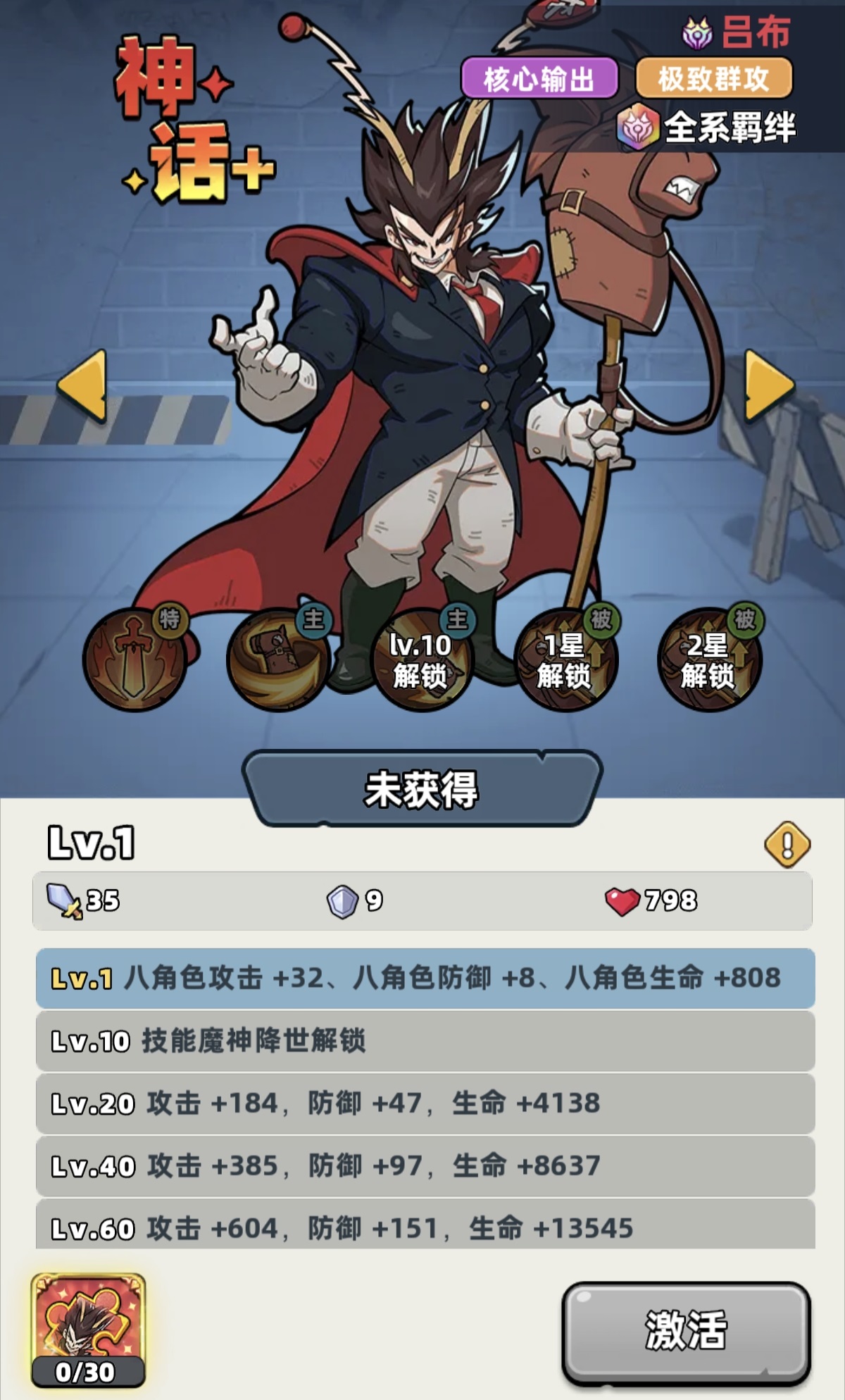 在末世生存题材手游《生存33天》中,吕布作为顶级神话级角色正式登场。这位历史上传奇的“飞将”并非简单复刻形象,而是深度融入游戏战斗体系,凭借高爆发、强群攻与独特机制,成为当前版本最具统治力的核心输出(主C)之一。本文将围绕吕布的实战定位、技能逻辑、阵容适配及养成路径展开系统解析,帮助玩家高效释放其战力潜能。