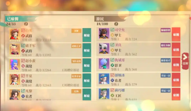 游戏所以前期玩家需要谨慎慎择方士和厨师这两个职业,这两个职业中一个奶量比较低,并且培育起来很慢,另外一个职业前期没有太大的作用,不建议玩家过多的投入资源,最好是先去培养一些战斗类型的职业或者是能力比较强的生产类职业。