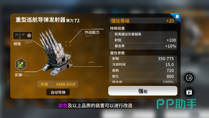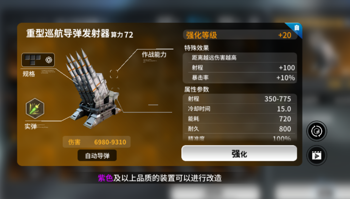 导弹类武器中,【巡航导弹】以775单位超远射程确立战术优势地位。该数值使其可在绝大多数敌方武器有效射程外完成多轮打击,支撑“风筝”式拉扯战术落地,是资源受限阶段实现无伤通关、以弱胜强的关键载具。其战略价值不在于单发爆发,而在于空间控制权与战斗节奏主导权的持续获取。