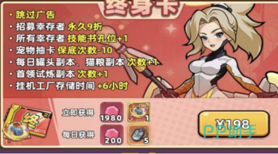 终身卡采用一次性付费模式,支付完成后所有对应特权即时激活并永久生效。首项关键权益是广告免打扰——玩家在任意界面触发广告时,均可一键跳过,全程无中断,显著提升操作连贯性与节奏掌控感。此外,在角色招募环节享有长期9折优惠,大幅降低高稀有度行程者(即角色)的获取门槛,有效缓解资源压力,尤其利于中后期阵容深度构建。
