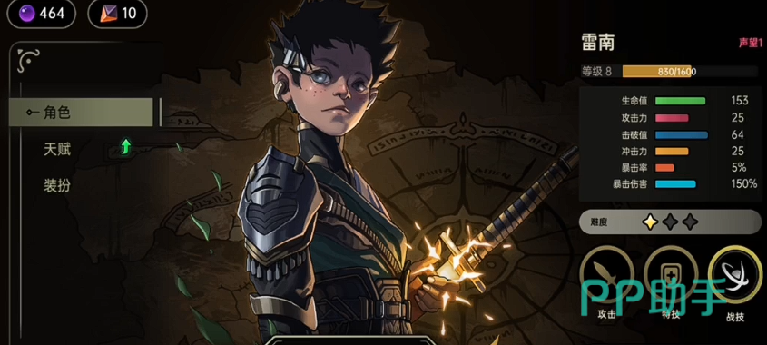 雷南——雷系核心输出型主角,开局即解锁「雷霆天赋」,具备明确的元素反应机制。其普攻共5段,每段命中后若已点亮对应技能树节点,可触发落雷效果;天赋点满后,普攻全程附带雷伤加成,招架动作亦可引动额外落雷判定,形成稳定法术伤害来源。战技为短时无敌风场投掷,兼具生存与控场能力。配装建议优先选择「红牙」天赋分支,大幅提升暴击率与暴击伤害;武器与护符倾向雷元素属性,强化挂雷频率与反应覆盖率,是兼顾操作下限与上限的泛用主力。