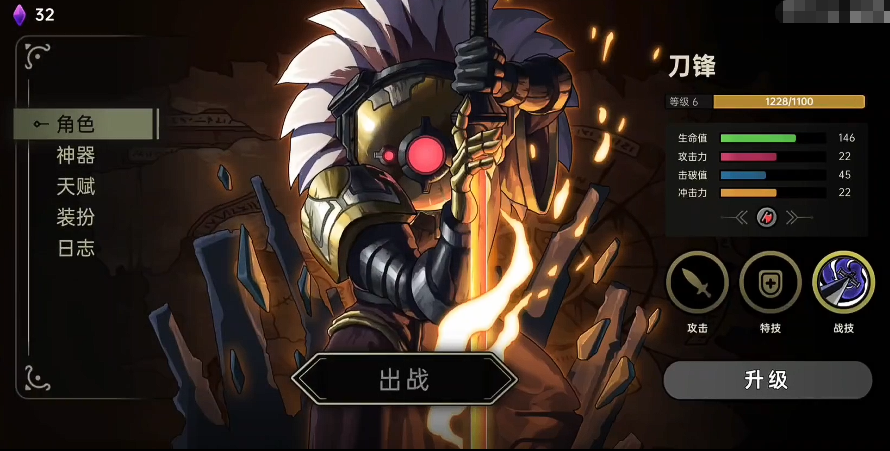 刀锋——高门槛反击专精角色。其强度高度依赖对反击窗口、敌方攻击节奏及帧数判定的理解。低难度关卡中容错率较高,节奏可控;但面对高频率、多段式或霸体敌人时,需配合减抗、减速等辅助流派协同作战。当前版本中,该角色在金币刷取类玩法中表现突出,但不建议新手初期选用,需一定实战经验积累方可发挥完整潜力。