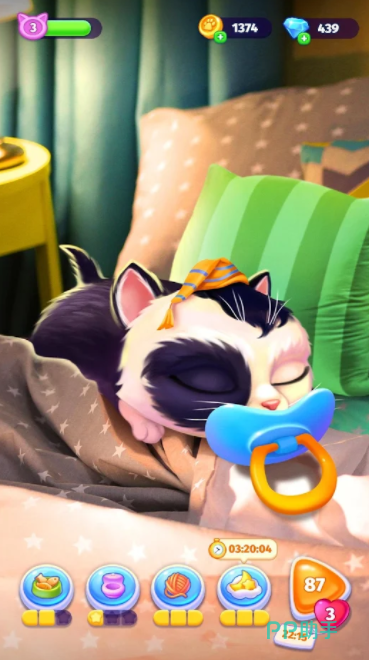 在我的猫咪这个游戏里玩法其实是非常简单的,玩家只需要去照顾猫咪,并且参与三消玩法,获得更多家具用来装修房间就可以,在和这些小猫互动的时候,大家需要注意这些猫咪的状态,每天都要给小猫喂食,做游戏以及照顾它睡觉,只有每天都完成这些任务,小猫才能健康的成长,游戏里关于这些小猫的体力是有相应数值呈现的,玩家需要通过选择不同的方式提升这些小猫的体力,这样才能让他们健康的成长。