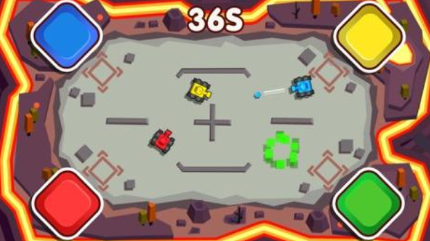 本作是款能够四人同屏操作的坦克主题PK射击作品,四个坦克射击对抗的玩法和操作都很简单,极高竞技性跟萌版坦克造型均为两点,在聚会上可直接拿出本作跟好友共同驾驭坦克PK,游戏机动性极强可轻松驾驭塔克移动,前方有障碍物或者敌人都会自动开火,轻松简单的控制与解压好玩的性质都是大家的最爱。