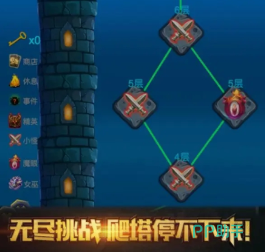 在这个神秘的异世界里会有无尽挑战的爬塔设定,而且这种爬塔玩法采用的是独特的菱形爬塔设计,这就代表着在爬塔的过程中有一层需要玩家挑战一次,而下一层玩家面临的将是一层状态下两种不同的考验,这时候需要根据实际的战斗状况和战场形势调整自身的卡牌组合,只有这样才能快速应对所有的敌人,游戏里这些英雄设定都是非常独特的,这样才能根据实际的情况选择角色。
