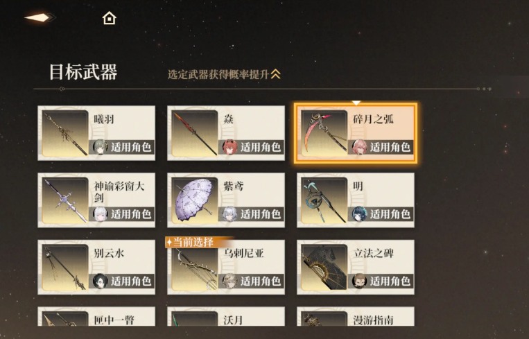 玩家进行武器自选时应该遵循对应的原则,比如要根据角色的具体情况,匹配合适的武器。目前在该游戏中角色涉及到职业问题,其中输出类型的角色,建议选择高攻击力或者是暴击率加倍的武器。辅助类型的角色在选择武器时应该关注冷却或治疗效果提高的武器。