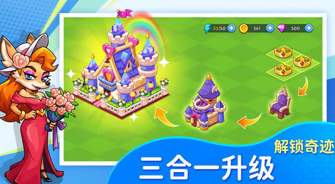 游戏内除了以上这这些养成玩法以外,还有宠物玩法,玩家可以通过培养宠物的方式,来提升他们的战斗力和体力上限数值,随后率领他们进入到战斗之中,通过合理的战斗,来获取更多的奖励道具,最后玩家可以通过合成这些奖励道具,来取得全新的建筑物。