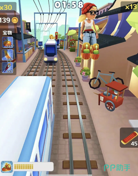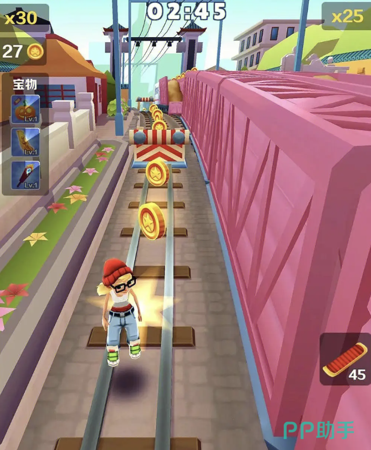 一、道具使用,玩家可以在游戏中不断地拾取沿途的各种道具,使用后可以根据道具不同的功效获得长短不一的速度提升,同样玩家也可以用得到的硬币购买加速的道具,有些道具除了加速还可以双倍获得分数,值得试试;