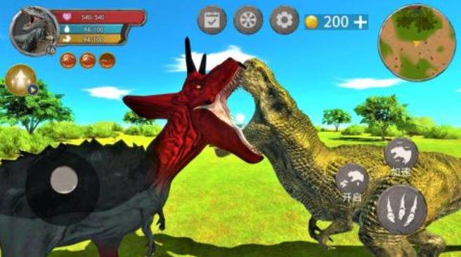 这款游戏为大家呈现的恐龙品种极为丰富,或是迅猛龙或是草食恐龙等等,而你可以对它们进行进化养成,从而使其成长为霸王龙、剑龙等等更为厉害的恐龙品种。游戏为了让你直观地看清楚恐龙的身体状况,特显示其体力值、血量值,你才可以对其进行调养,让它们保持最好的状态来灭杀敌人。