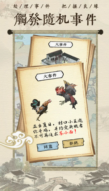 玩家将扮演一位古代村民,体验日出而作、日落而息的田园生活。游戏的核心玩法包括开垦农田、种植作物、经营村庄等休闲内容,让玩家在快节奏的现代生活中找到片刻宁静。除了基础的农耕生活,游戏还融入了丰富的随机事件系统。这些意外惊喜让游戏过程充满变数,比如偶遇商队、遭遇天灾等,为玩家带来更真实的古代生活体验。当村庄发展到一定规模后,玩家还能解锁周边地图,探索更广阔的古代世界。