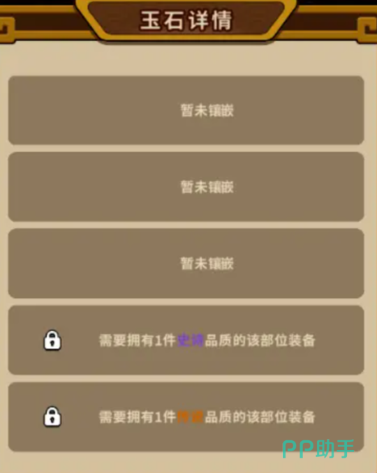 游戏初始武器的玉石插槽不多,只有三个,如果玩家使用的是史诗级别装备,抑或是传说级别装备,则可以解锁第四孔玉石,以及第五孔玉石,同装备的同属性效果玉石,实际上是不可以重复进行镶嵌的,玩家只能够利用不同的玉石, 促成合理的套装流派,