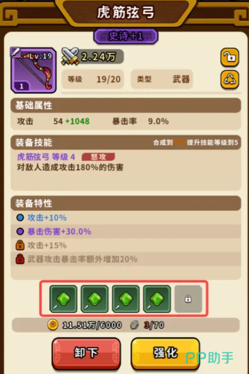 弓箭部位使用“弩箭加一”的玉石,可以保证弩箭的数量持续增加一点,同时伤害也可以提升50%。