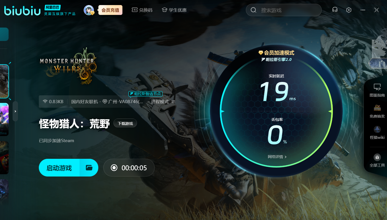 怪物猎人荒野作为一款国际佳作,早就吸引了无数玩家涌入,不过目前暂时没有上线国服;为了成为怪猎中的一份子,大家还要用上biubiu,即可进入其中进行狩猎。对于刚注册的新用户来说,就能领取24小时的免费加速。另外新老用户通过兑换码【biubiu不卡顿】,就能额外获得三天免费加速。要是探索世界的过程中过卡的话,就会被突如其来的危险所击倒。这时可以用上加速器,就有能力和勇气继续探险世界中的每个角落。