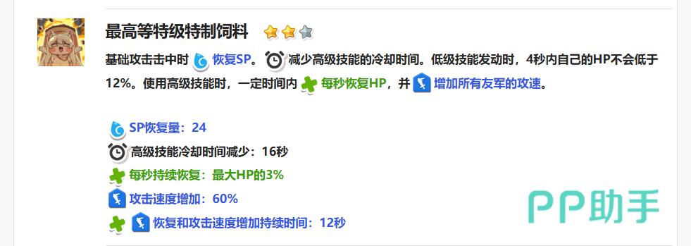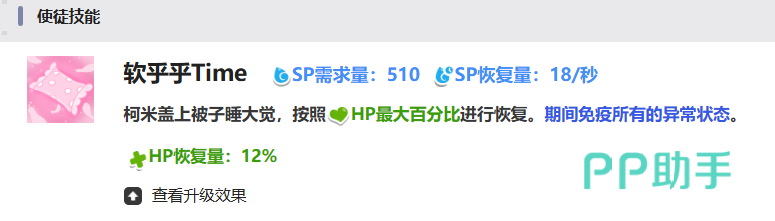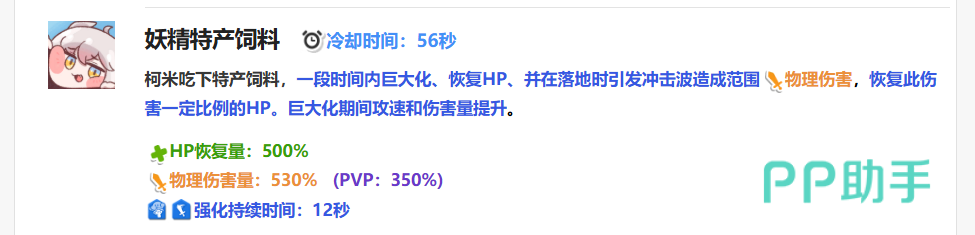 在使用“软乎乎time”进行治疗后,科米还能进入免疫异常状态的阶段,在此期间不会受到任何负面效果影响,极大提升了她在高难度关卡中的稳定性。她的另一项核心技能是“妖精特产饲料”,该技能冷却时间长达56秒,平均每分钟仅能释放一次。施法时,科米会摄入特殊饲料,触发身体巨大化的形态变化。在此状态下,她将持续恢复生命值,虽然单次恢复量有限,但结合持续时间来看整体续航表现优异。