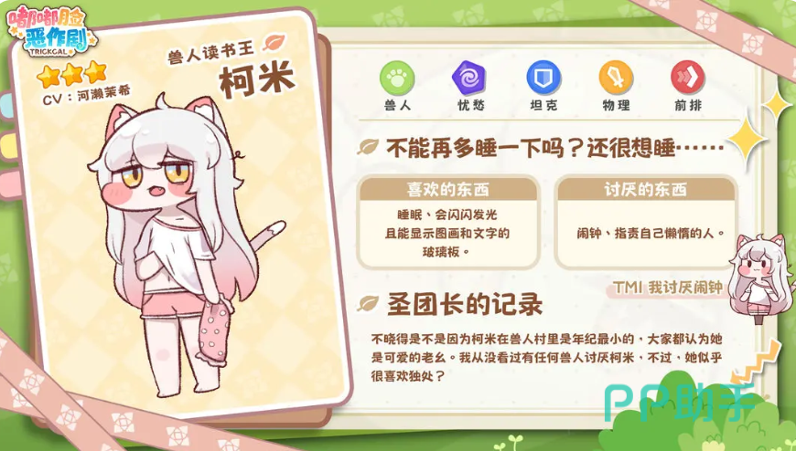 在嘟嘟脸恶作剧中,众多可操控的三星角色各具特色,每位使徒不仅性格鲜明,战斗风格也大不相同。本期将聚焦一位性格偏向忧郁的角色——科米。作为游戏中稀有度为三星的角色,她具备出色的前排承伤能力,非常适合阵容中缺乏坦位的玩家使用。科米的职业定位是坦克,能够在前线有效吸收伤害并提供稳定的控制与续航支持。