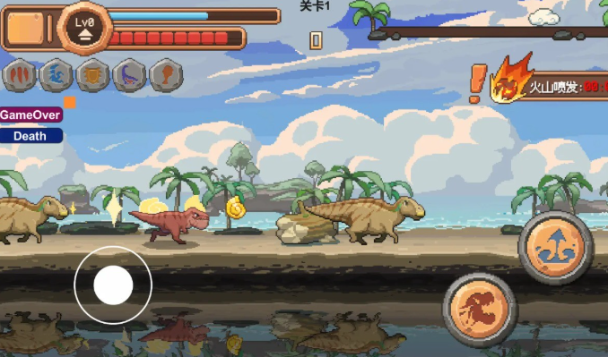 玩家将操控一只憨态可掬的小恐龙,在充满挑战的关卡中穿梭,躲避陷阱、跨越障碍,同时还需时刻关注恐龙的生命值与体力。随着时间推移,恐龙的体力会逐渐消耗,玩家必须通过收集场景中的食物来维持其活力,否则将面临失败的风险。地图中还隐藏着大量秘密区域,玩家可通过探索获得额外奖励或解锁特殊道具。