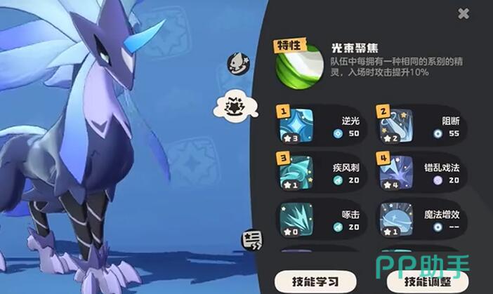 起手顺序:光束聚集→闪光冲击(叠星陨)→魔法增强(为下一波增加爆发)。若敌方残血,优先用四维降解收割。属性的话主魔攻(提升技能伤害)、副速度(确保先手,但本身速度就比较客观可副点)。如果技能循环断档:留1层buff防打断,可用啄击过渡。