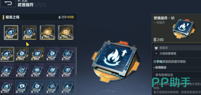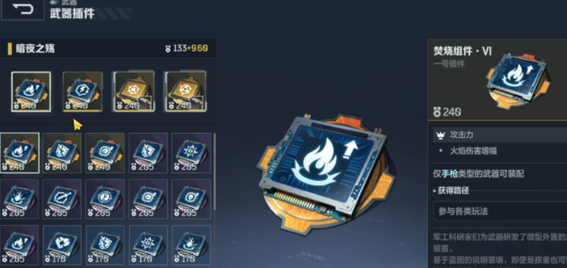 获取方式方面,“暗夜之殇”并非副本掉落或商城直购道具,而是通过参与游戏内限时运营活动直接解锁,属于零门槛获取型传奇武器,新手玩家亦可轻松入手。培养路径上,需重点匹配适配插件以最大化输出潜力,推荐配置包括充能弹药、弱点功能、精密追击与无限烟花四项插件。