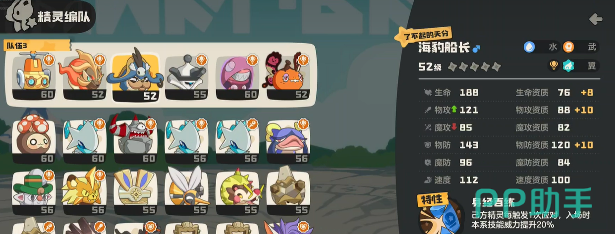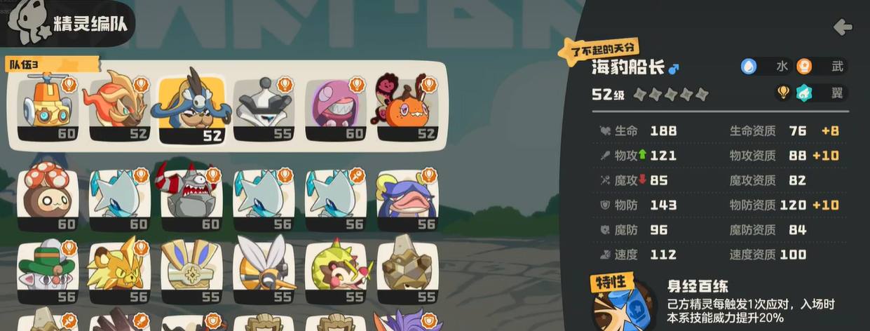 阵容主力构成明确:皇后与海豹船长为武系双核,负责长期属性积累与终结打击;彩碟鲨是雨天唯一指定启动者;小独角兽或蓝鸟担任功能型辅助,承担提速、控场或补位协防等复合职能。实战操作中需优先确立速度优势,确保彩碟鲨首回合成功开启雨天,并配合水泡壳的遁地机制规避首轮爆发伤害,从而实现技能衔接零失误与战术节奏无缝过渡。