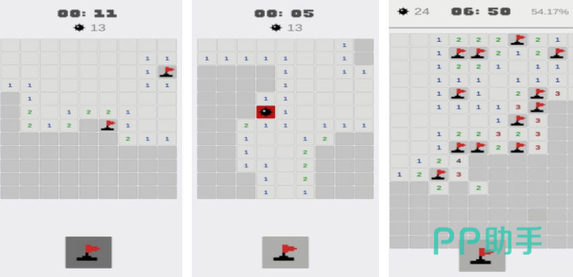 扫雷是比较经典的一个游戏,扫雷经典版自然会保留最常规的设定,里面每一关都会有不同的地雷数量,玩家的游戏开始之后需要快速点击被方格覆盖的数字,每次点击都会有成片的数字展现出来,就根据这些数字的提示推理出地雷的准确位置,把除了地雷之外,所有的方块都点击完毕之后,游戏就能获得胜利。