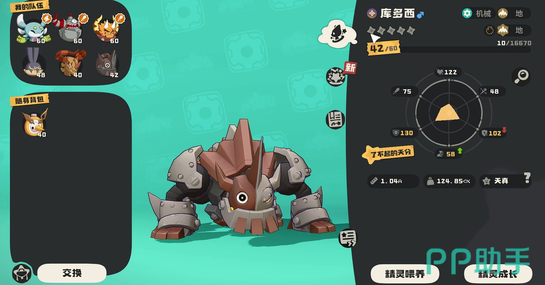 库多西具备“定向精炼”特性,在战斗中,每当队友精灵使用防御类技能时,库多西登场后机械系技能威力将获得增益,且每次释放防御技都会使该增益叠加10%。因此,推荐为其配置如齿轮扭矩、磁暴、能量守恒、械斗或齿轮切开等高威力机械系技能,充分发挥输出潜力。同时,机械系特有的传送机制也能增强其战术灵活性。若想进一步强化实力,可继续培养至48级,使其最终进化为波多西,达到该进化链的巅峰形态。