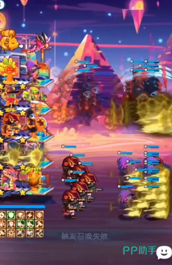 第一个是:暴风苹果,大头蘑菇和花童子,这个持续输出是很nice的。激光使者对敌人造成穿透伤害,它的群体攻击能力很强。花童子能够加强伤害,提升群体攻击。