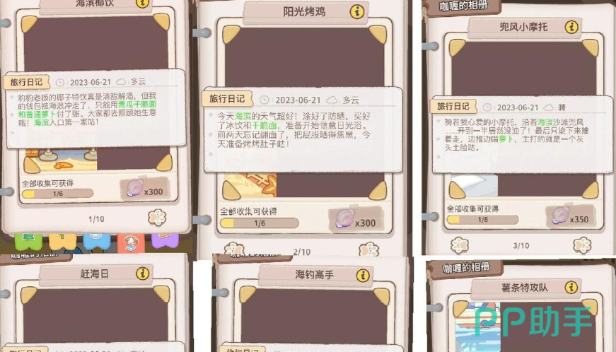 在随后的旅行日记当中,玩家会被要求帮助海钓高手准备料理,玩家携带胡萝卜和田寿司就可以了,此次关卡不需要玩家进行更多的制作,在后续薯条特工队之中,玩家携带两个萝卜就能够完成任务, 随后玩家会被要求参与到海底探秘之中,此时玩家需要在餐馆之中制作馕和蘑菇, 在赠送给海底探险队之后,玩家可以获得海底探险相关的成就。