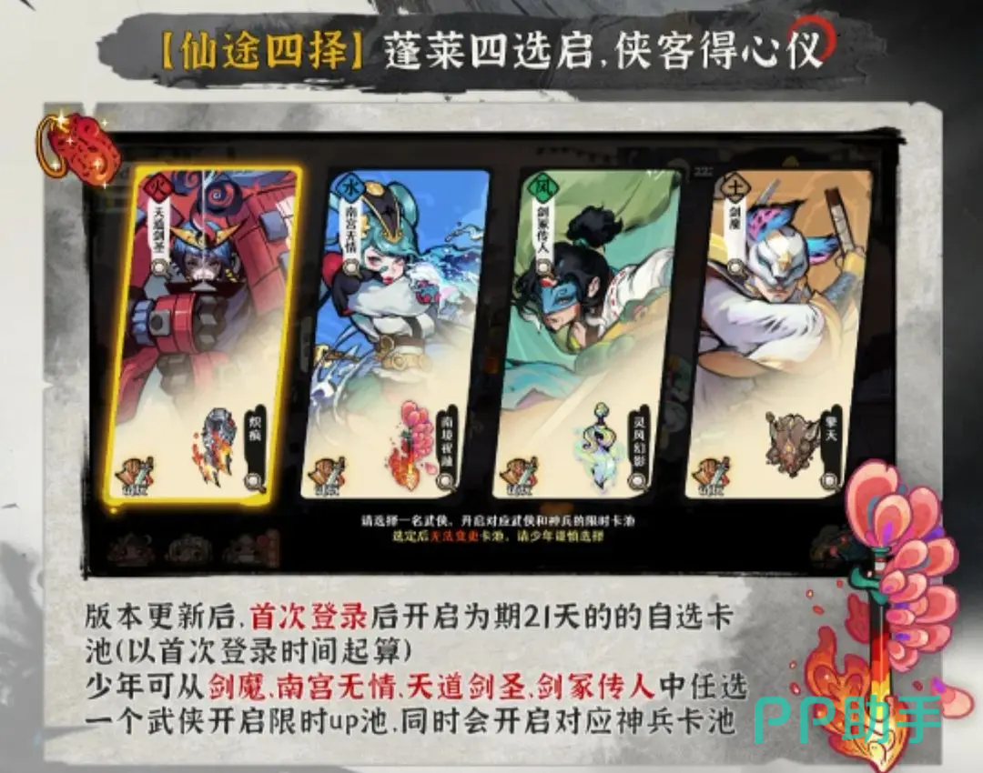 若计划适度投入,建议选择“自动剑魔体系”:开局6元首充即赠兔子角色;通过仙途四则抽取土系剑魔;再配合擎天UP卡池补足关键位。标准配置为剑魔+兔子+狂暴金狮,少年神兵组合锁定赤霄、祝融、擎天三件,兼顾爆发、续航与破防能力,适合追求高效率推图与稳定PVP表现的玩家。