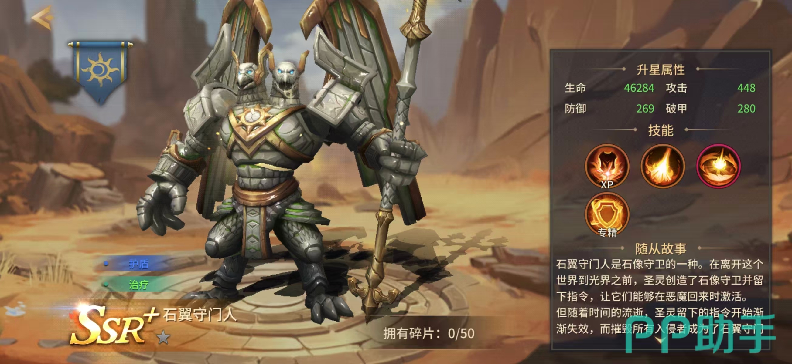 在《地牢猎手6》中,石翼守门人是一位兼具视觉冲击力与战术价值的SSR+级伙伴。其双首、巨翼、磐石之躯的设计打破了传统治疗角色的刻板印象,既非纯输出也非常规坦克,而是以“高维生存辅助”为核心定位的独特存在。